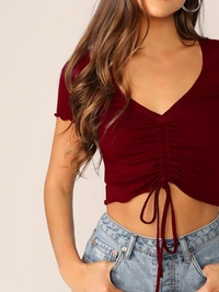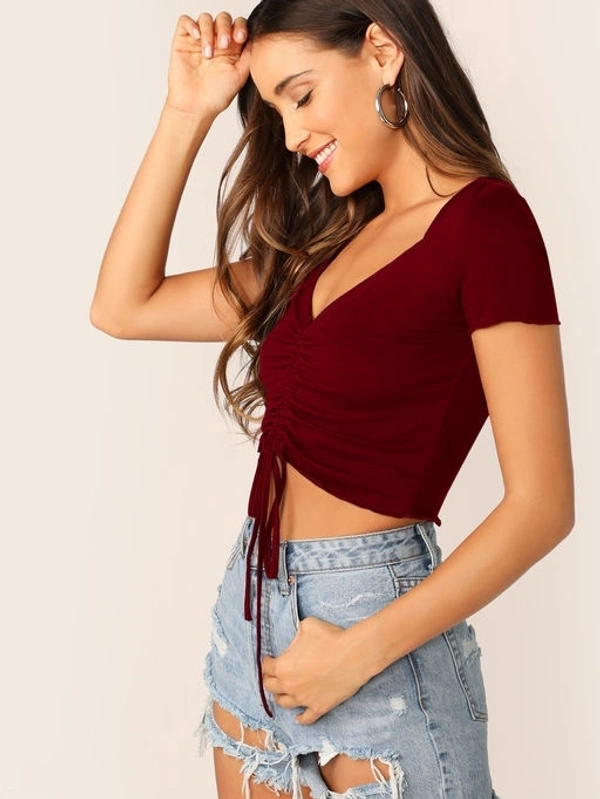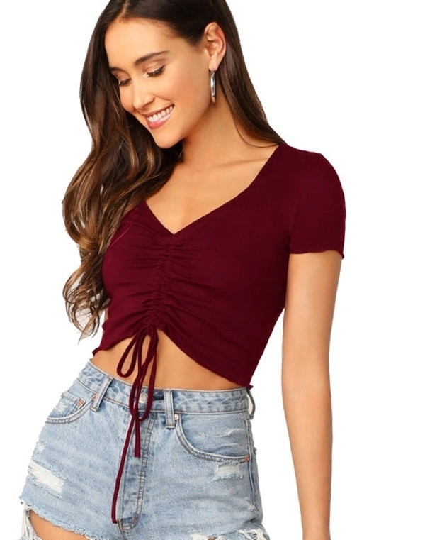 Aahwan Women's Solid Gathered Sleeve Fancy Pary Wear Top Fabric: Polyester Sleeve Length: Short Sleeves Pattern: Solid Multipack: 1 Sizes: S (Bust Size: 33 in, Length Size: 17 in) XS (Bust Size: 31 in, Length Size: 17 in) L (Bust Size: 37 in, Length Size: 17 in) M (Bust Size: 35 in, Length Size: 17 in) Country of Origin: India