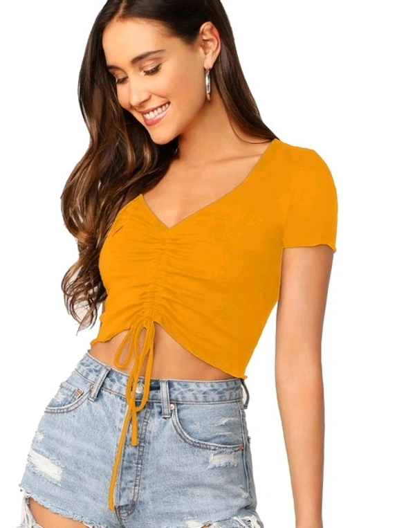 Aahwan Women's Solid Gathered Sleeve Fancy Pary Wear Top Fabric: Polyester Sleeve Length: Short Sleeves Pattern: Solid Multipack: 1 Sizes: S (Bust Size: 33 in, Length Size: 17 in) XS (Bust Size: 31 in, Length Size: 17 in) L (Bust Size: 37 in, Length Size: 17 in) M (Bust Size: 35 in, Length Size: 17 in) Country of Origin: India
