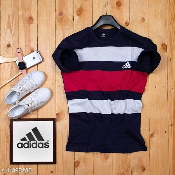 ADIDAS Men's Round Neck T-SHIRT [ Half Sleeve ] With High Quality Print & [ Cut & Sew ] Fabric: Cotton Sleeve Length: Short Sleeves Pattern: Striped Multipack: 1 Sizes: L (Chest Size: 37 in, Length Size: 30 in) Country of Origin: India