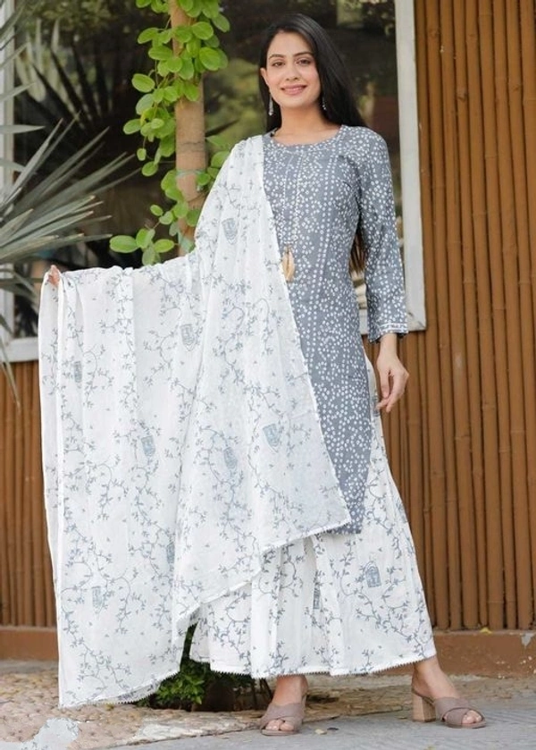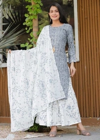 Aishani Graceful Women Kurta Sets Kurta Fabric: Rayon Bottomwear Fabric: Rayon Fabric: Rayon Sleeve Length: Three-Quarter Sleeves Set Type: Kurta With Dupatta And Bottomwear Bottom Type: Skirt Pattern: Printed Multipack: Pack Of 3 Sizes: XL (Bust Size: 42 in, Shoulder Size: 15 in, Kurta Waist Size: 40 in, Kurta Hip Size: 44 in, Duppatta Length Size: 2.1 m) L (Bust Size: 40 in, Shoulder Size: 14.5 in, Kurta Waist Size: 38 in, Kurta Hip Size: 42 in, Duppatta Length Size: 2.1 m) XXL (Bust Size: 44 in, Shoulder Size: 15.5 in, Kurta Waist Size: 42 in, Kurta Hip Size: 46 in, Duppatta Length Size: 2.1 m) M (Bust Size: 38 in, Shoulder Size: 14 in, Kurta Waist Size: 36 in, Kurta Hip Size: 40 in, Duppatta Length Size: 2.1 m) Country of Origin: India