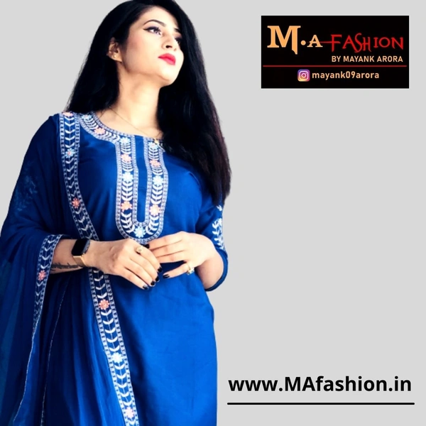 M (Bust Size: 38 in, Shoulder Size: 13.5 in, Kurta Waist Size: 36 in, Kurta Hip Size: 40 in, Kurta Length Size: 46 in, Bottom Waist Size: 29 in, Bottom Hip Size: 40 in, Bottom Length Size: 38 in, Duppatta Length Size: 2.2 m)