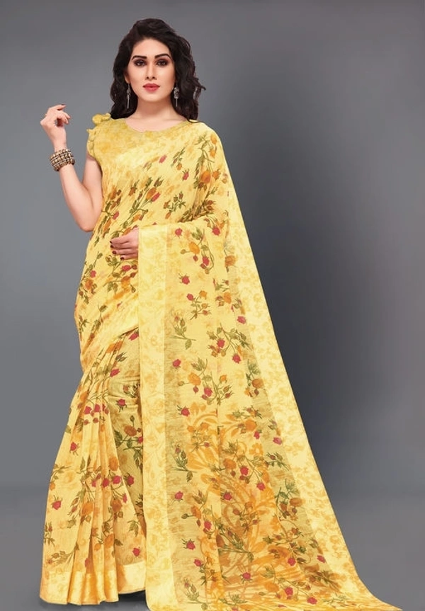 Cotton Tropical Print Saree With Blouse Piece 163