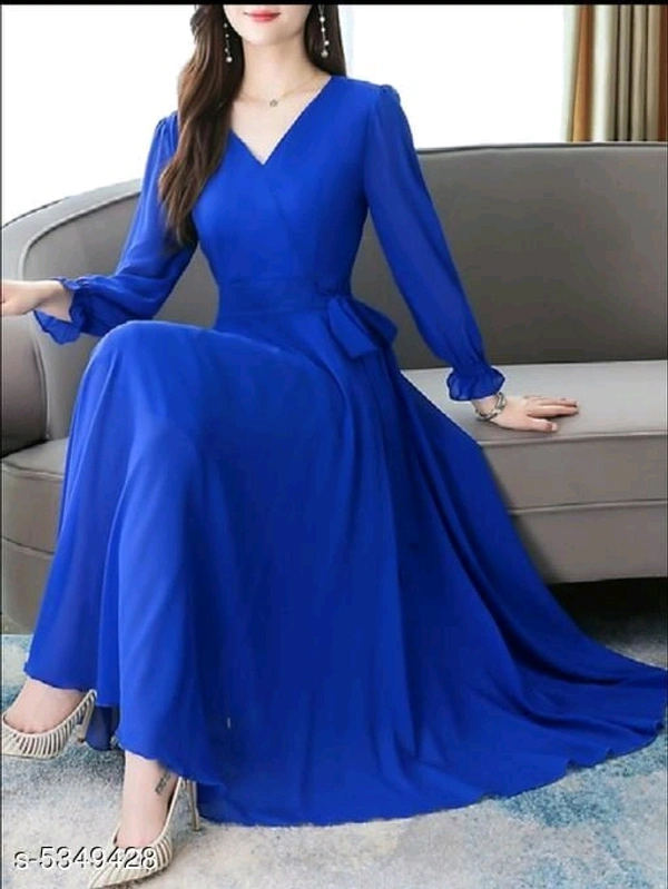 Fancy Fabulous Women Dresses Fabric: Georgette Sleeve Length: Three-Quarter Sleeves Pattern: Solid Multipack: 1 Sizes: XL (Bust Size: 42 in, Length Size: 54 in) L (Bust Size: 40 in, Length Size: 54 in) M (Bust Size: 38 in, Length Size: 54 in) XXL (Bust Size: 44 in, Length Size: 54 in)