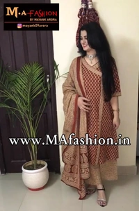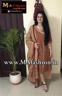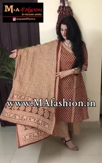 Indo Era Maroon Floral Printed Anghrakha Style A-Line Kurta with Palazzo Set with Dupatta