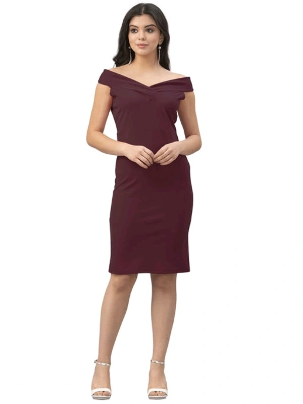 Lycra Solid Brown Western Dress