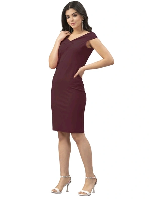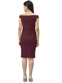 Lycra Solid Brown Western Dress