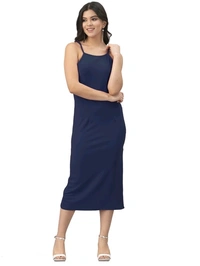 Lycra Solid Navy Blue Western Dress Fabric: Lycra Sleeve Length: Sleeveless Pattern: Self-Design Multipack: 1 Sizes: S (Bust Size: 34 in, Length Size: 47 in) XL (Bust Size: 40 in, Length Size: 47 in) L (Bust Size: 38 in, Length Size: 47 in) M (Bust Size: 36 in, Length Size: 47 in) Country of Origin: India