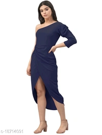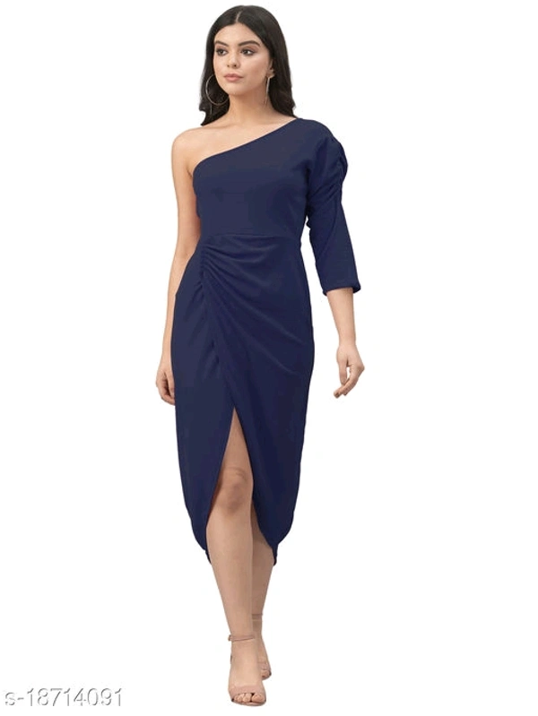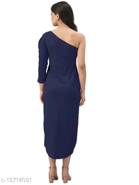 Lycra Solid Navy Blue Western Dress
