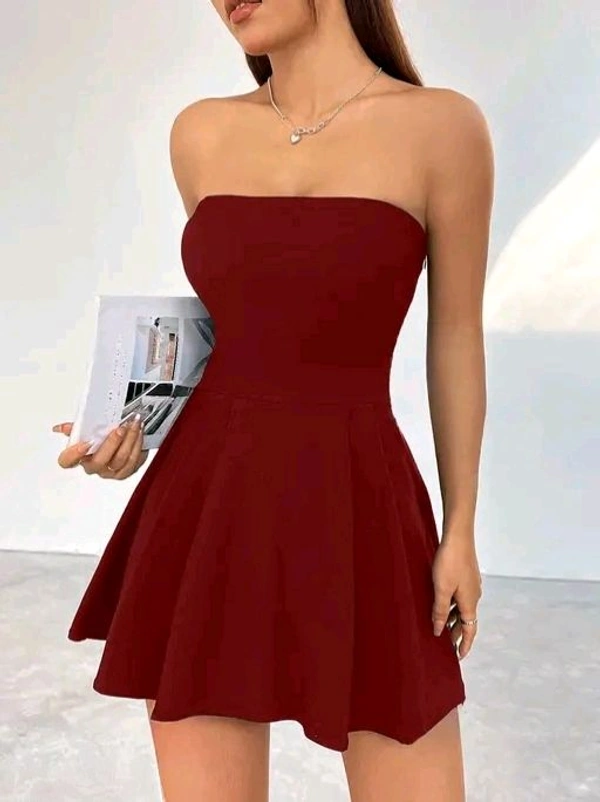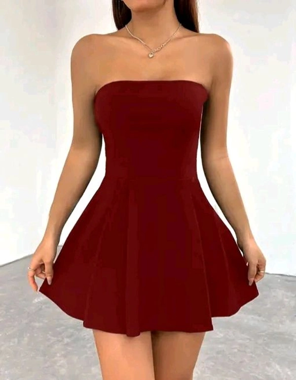 Name: Solid Tube Fit & Flared Mini Dress For Women.