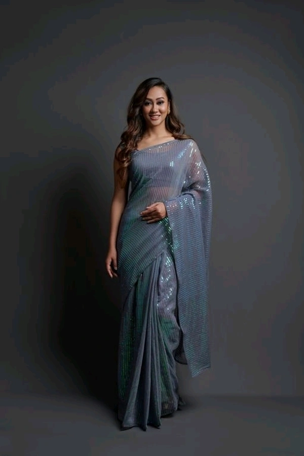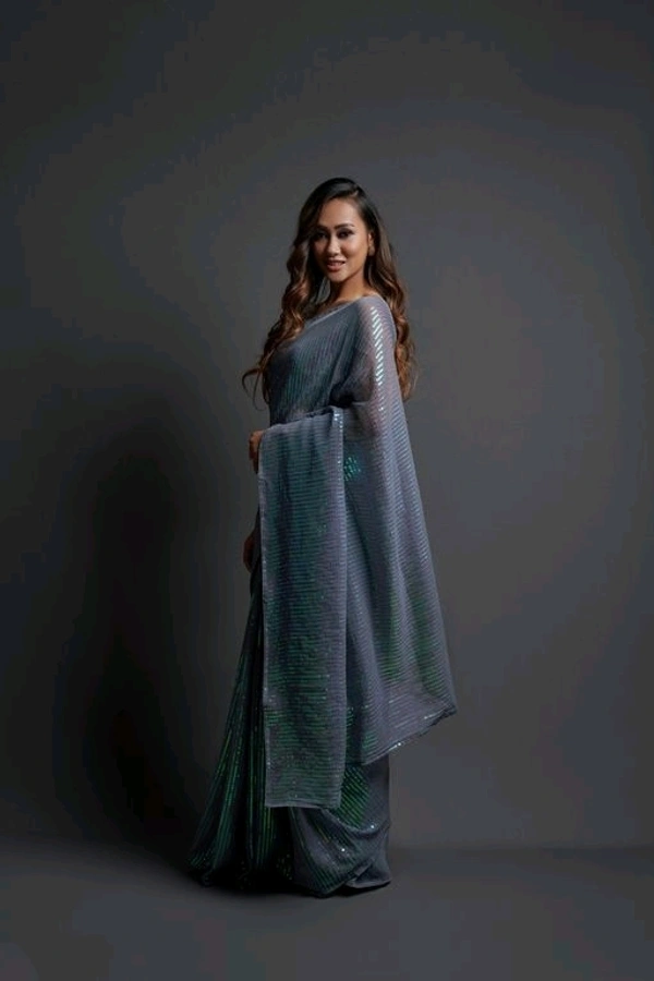 Premium Women's Georgette Silk Embroidered Sequin Saree With Blouse 113