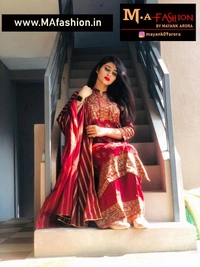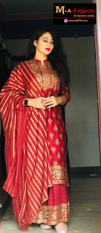 RAYON BEAUTIFUL PRINNTED KURTI & SKIRT WITH PREETY PRINTED DUPATA Kurta Fabric: Rayon Bottomwear Fabric: Rayon Fabric: Rayon Sleeve Length: Three-Quarter Sleeves Set Type: Kurta With Dupatta And Bottomwear Bottom Type: Sharara Pattern: Printed Multipack: Single Sizes: XL (Bust Size: 42 in, Shoulder Size: 15.5 in, Kurta Waist Size: 40 in, Kurta Hip Size: 44 in, Kurta Length Size: 45 in, Bottom Waist Size: 30 in, Bottom Hip Size: 46 in, Bottom Length Size: 39 in, Duppatta Length Size: 2 m) L (Bust Size: 40 in, Shoulder Size: 15 in, Kurta Waist Size: 38 in, Kurta Hip Size: 42 in, Kurta Length Size: 45 in, Bottom Waist Size: 29 in, Bottom Hip Size: 44 in, Bottom Length Size: 39 in, Duppatta Length Size: 2 m) M (Bust Size: 38 in, Shoulder Size: 14.5 in, Kurta Waist Size: 36 in, Kurta Hip Size: 40 in, Kurta Length Size: 45 in, Bottom Waist Size: 28 in, Bottom Hip Size: 42 in, Bottom Length Size: 39 in, Duppatta Length Size: 2 m) XXL (Bust Size: 44 in, Shoulder Size: 16 in, Kurta Waist Size: 42 in, Kurta Hip Size: 46 in, Kurta Length Size: 45 in, Bottom Waist Size: 31 in, Bottom Hip Size: 48 in, Bottom Length Size: 39 in, Duppatta Length Size: 2 m) Country of Origin: India