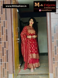 M (Bust Size: 38 in, Shoulder Size: 14.5 in, Kurta Waist Size: 36 in, Kurta Hip Size: 40 in, Kurta Length Size: 45 in, Bottom Waist Size: 28 in, Bottom Hip Size: 42 in, Bottom Length Size: 39 in, Duppatta Length Size: 2 m)