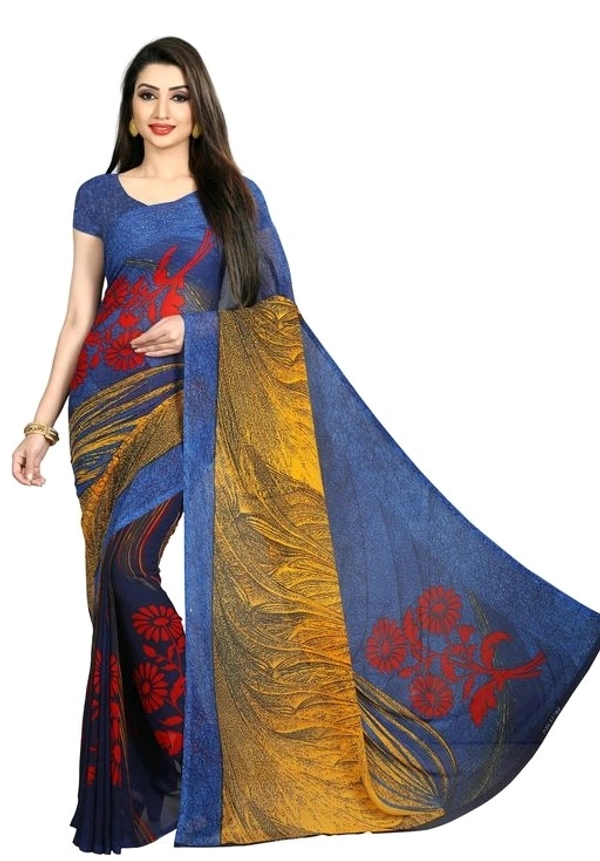 Saree Printed, Striped Daly Wear Georgette Saree(Blue)