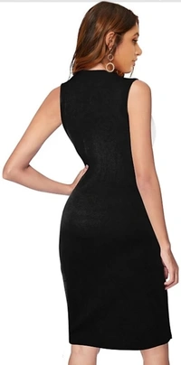 Sleeveless Checkered Hosiery Black And White Bodycon Dress (36"Inches)