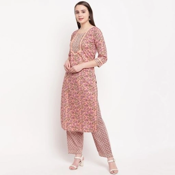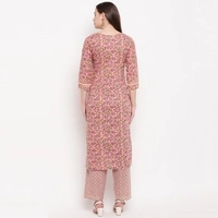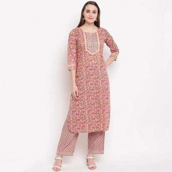 Vbuyz Women's All Over Print Straight Cotton Peach Kurti With Pant Set