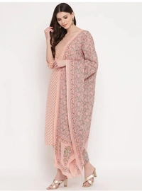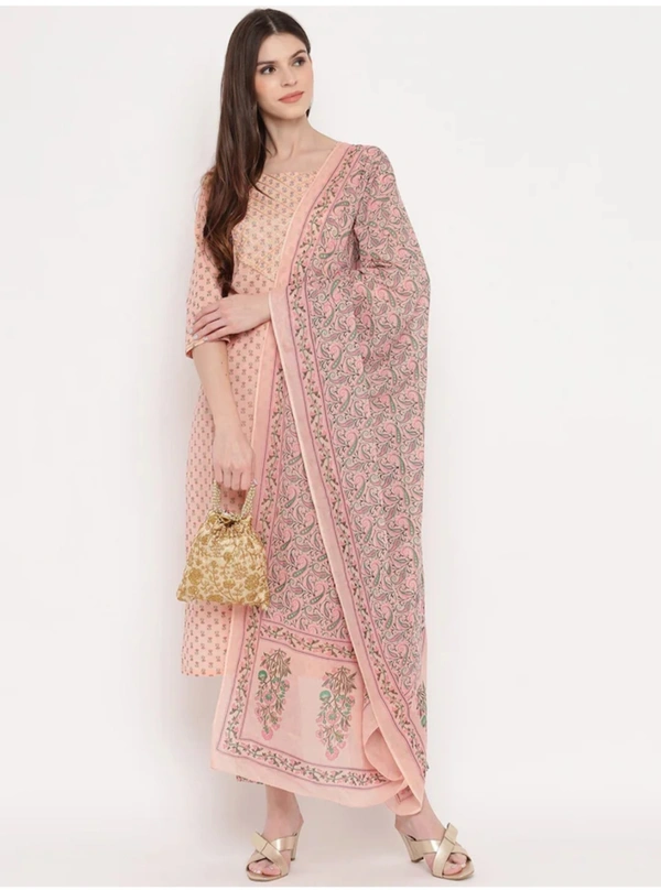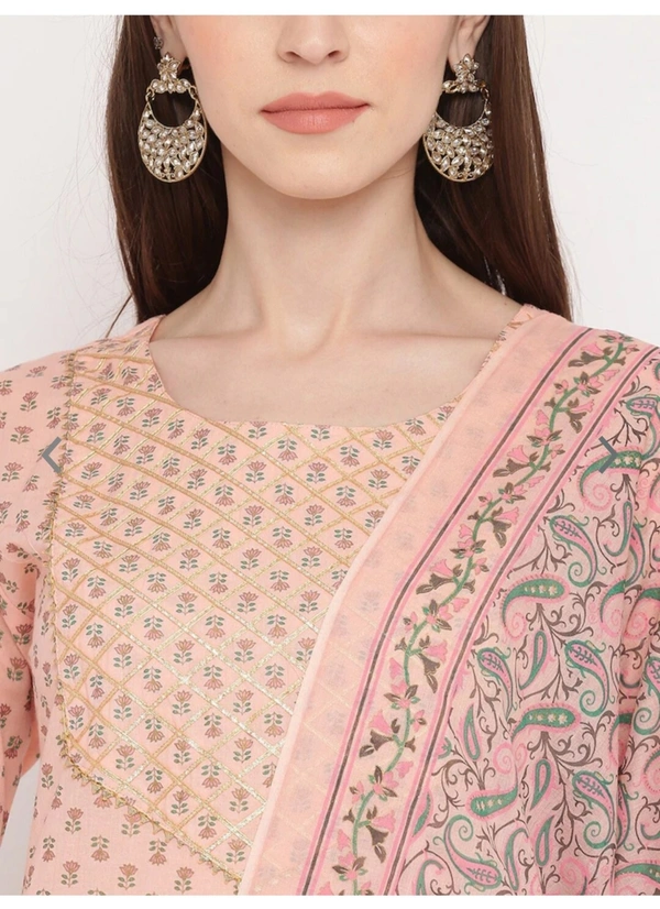 Vbuyz Women's Foil Print & Gota Patti Work Straight cotton Peach Kurta,Pant & Dupatta