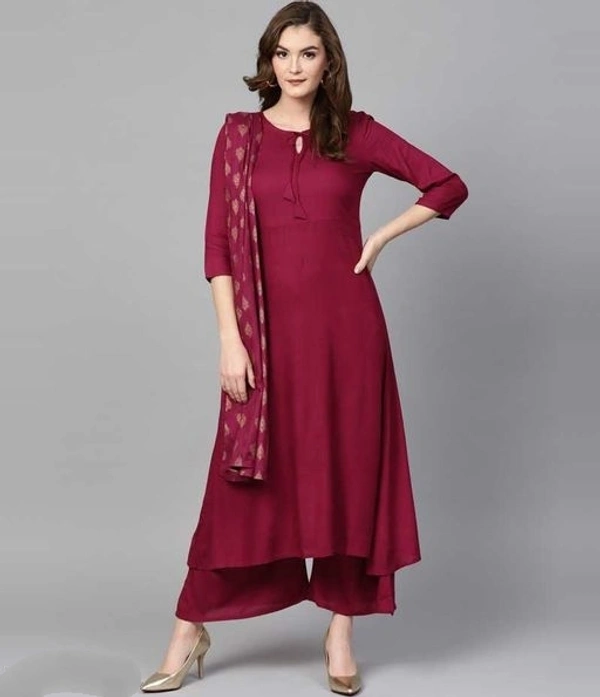 Women Rayon A-line Printed Long Kurti With Palazzos