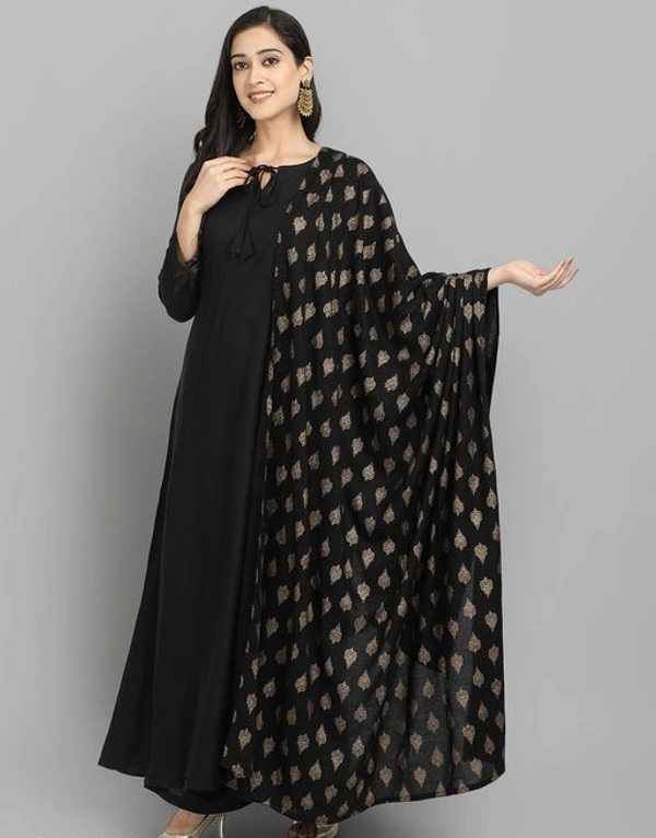 Women Rayon A-line Solid Long Kurti With Palazzos1