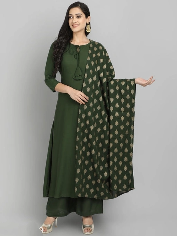 Women Rayon A-line Solid Long Kurti With Palazzos