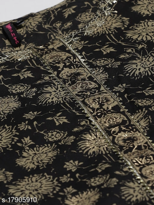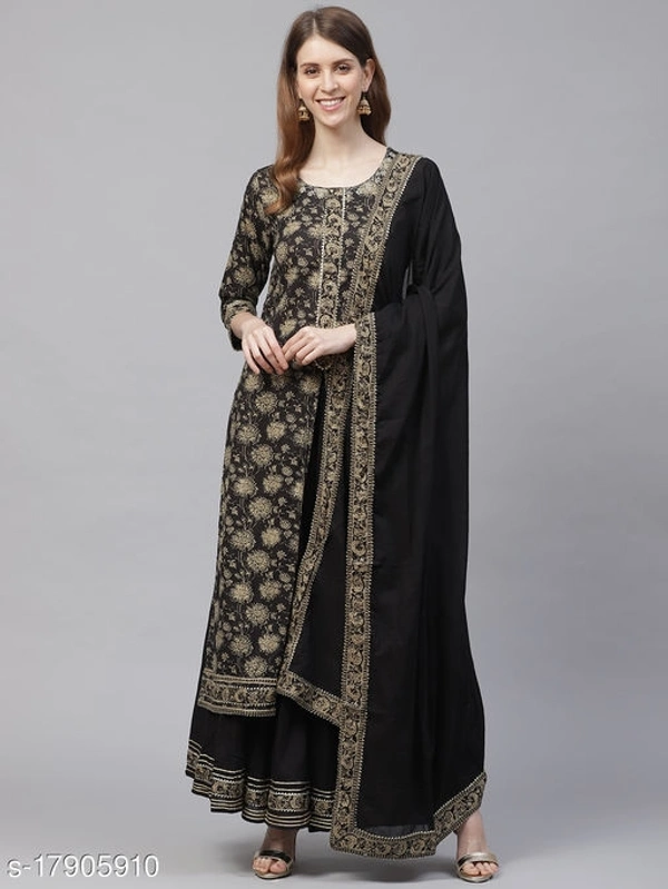 Women's Cotton Printed With Gota Patti A-Line Kurta Sharara Dupatta Set