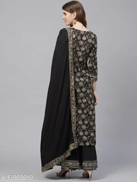 L (Bust Size: 40 in, Shoulder Size: 15 in, Kurta Waist Size: 36 in, Kurta Length Size: 47 in, Bottom Waist Size: 34 in, Bottom Hip Size: 44 in, Bottom Length Size: 41 in, Duppatta Length Size: 2.3 m)