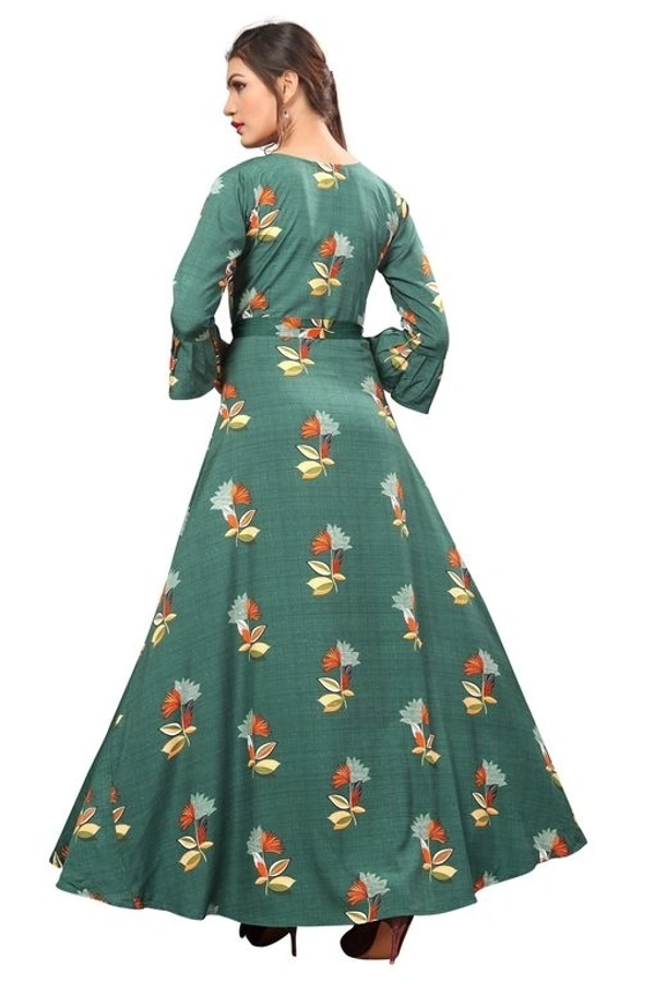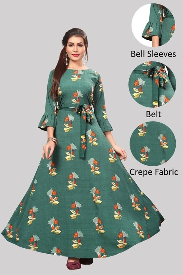 Women's Crepe Bell Sleeve Floor Length Anarkali Maxi Gown 2