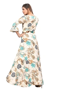 Women's Crepe Bell Sleeve Floor Length Anarkali Maxi Gown 3