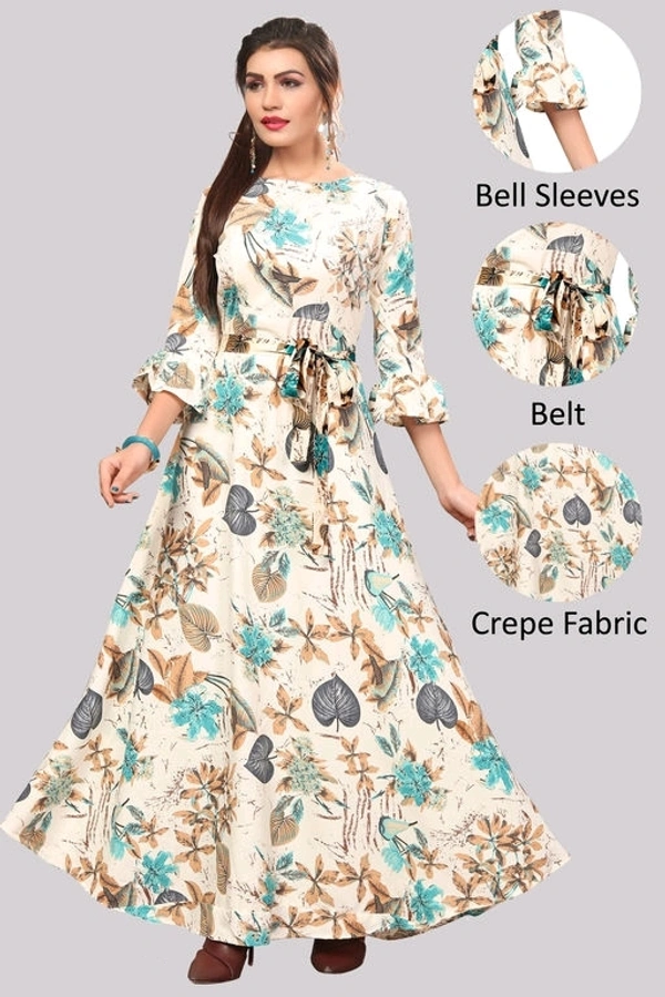 Women's Crepe Bell Sleeve Floor Length Anarkali Maxi Gown 3