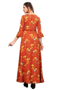 Women's Crepe Bell Sleeve Floor Length Anarkali Maxi Gown 4