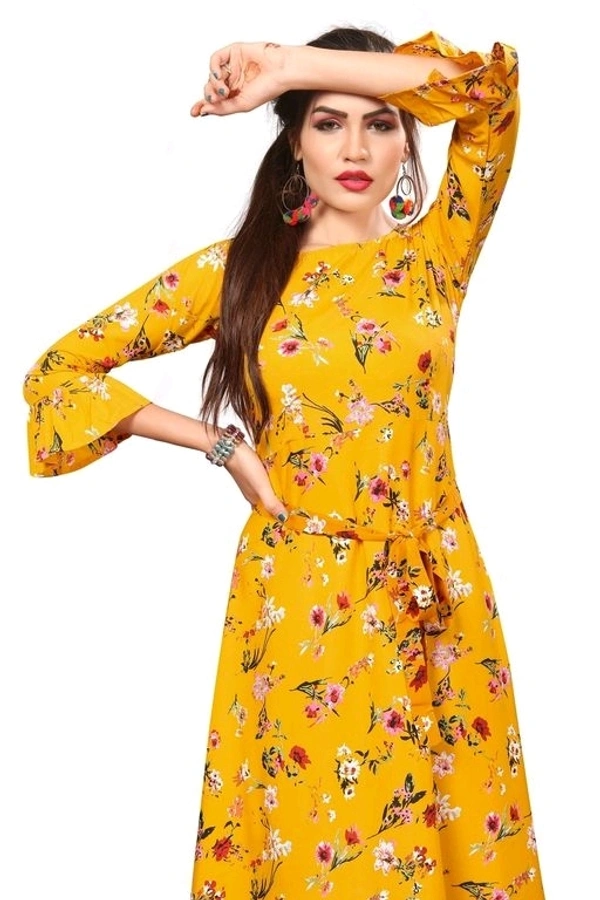 Women's Crepe Bell Sleeve Floor Length Anarkali Maxi Gown 5
