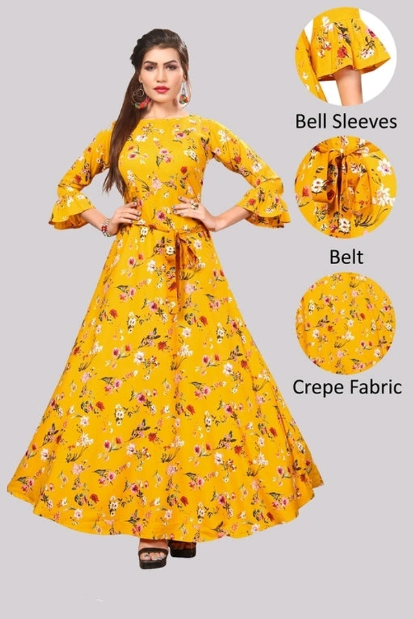 Women's Crepe Bell Sleeve Floor Length Anarkali Maxi Gown 5