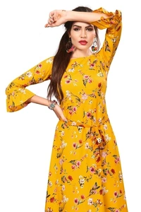 Beautifull Women Dresses Fabric: Crepe Sleeve Length: Three-Quarter Sleeves Pattern: Printed Multipack: 1 Sizes: S (Bust Size: 36 in, Length Size: 56 in) XL (Bust Size: 42 in, Length Size: 56 in) L (Bust Size: 40 in, Length Size: 56 in) XXL (Bust Size: 44 in, Length Size: 56 in) M (Bust Size: 38 in, Length Size: 56 in) Dispatch: 1 Day