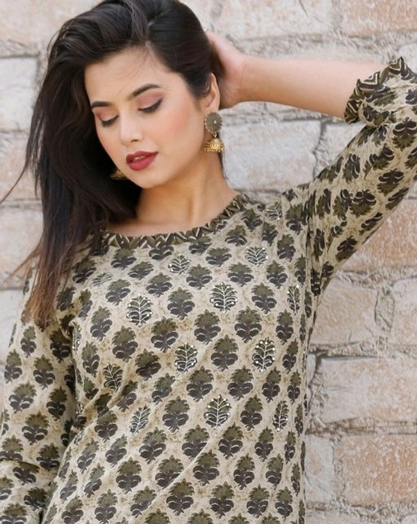 M (Bust Size: 38 in, Shoulder Size: 15 in, Kurta Waist Size: 36 in, Kurta Hip Size: 40 in, Kurta Length Size: 46 in, Bottom Waist Size: 36 in, Bottom Hip Size: 36 in, Bottom Length Size: 40 in)
