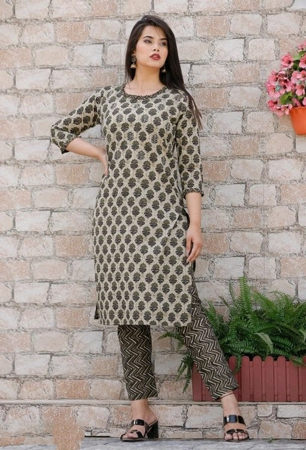 Women's Embroidered Cotton Kurta Pants Set Kurta Fabric: Cotton Bottomwear Fabric: Cotton Fabric: Cotton Sleeve Length: Three-Quarter Sleeves Set Type: Kurta With Bottomwear Bottom Type: Pants Pattern: Printed Multipack: Single Sizes: S (Bust Size: 36 in, Shoulder Size: 15 in, Kurta Waist Size: 34 in, Kurta Hip Size: 38 in, Kurta Length Size: 46 in, Bottom Waist Size: 34 in, Bottom Hip Size: 34 in, Bottom Length Size: 40 in) XL (Bust Size: 42 in, Shoulder Size: 16 in, Kurta Waist Size: 40 in, Kurta Hip Size: 44 in, Kurta Length Size: 46 in, Bottom Waist Size: 40 in, Bottom Hip Size: 40 in, Bottom Length Size: 40 in) L (Bust Size: 40 in, Shoulder Size: 15.5 in, Kurta Waist Size: 38 in, Kurta Hip Size: 42 in, Kurta Length Size: 46 in, Bottom Waist Size: 38 in, Bottom Hip Size: 38 in, Bottom Length Size: 40 in) M (Bust Size: 38 in, Shoulder Size: 15 in, Kurta Waist Size: 36 in, Kurta Hip Size: 40 in, Kurta Length Size: 46 in, Bottom Waist Size: 36 in, Bottom Hip Size: 36 in, Bottom Length Size: 40 in) XXL (Bust Size: 44 in, Shoulder Size: 16.5 in, Kurta Waist Size: 42 in, Kurta Hip Size: 46 in, Kurta Length Size: 46 in, Bottom Waist Size: 42 in, Bottom Hip Size: 42 in, Bottom Length Size: 40 in) Country of Origin: India