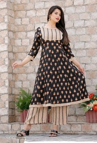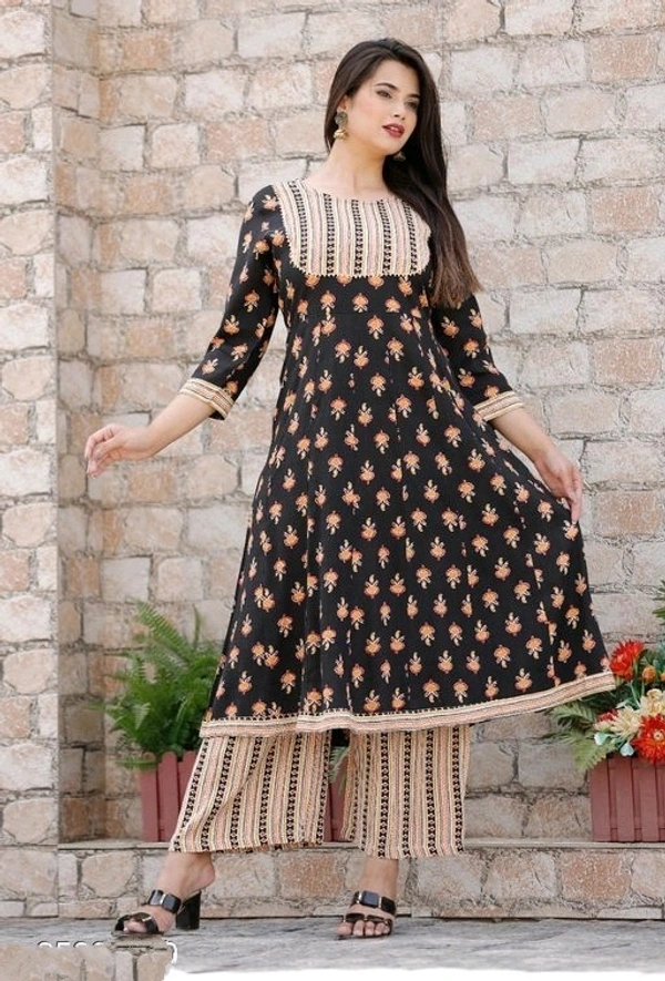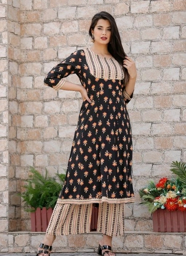 Women's Embroidered Rayon Kurta Palazzos Set