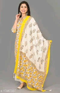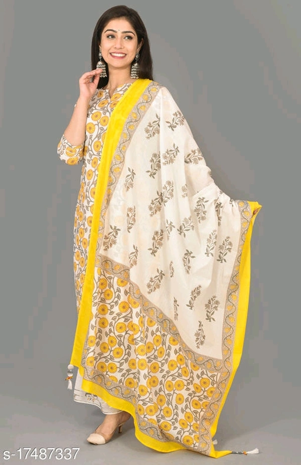 Women's Jaipuri Block Print Cotton Kurta Pant set with Chiffon Dupatta Readymade Dress Suit