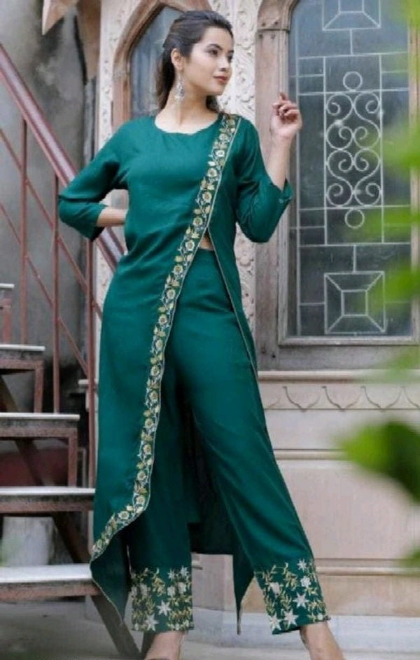 Women Rayon A-line Embroidered Long Kurti With Palazzos Kurta Fabric: Rayon Bottomwear Fabric: Rayon Fabric: Rayon Sleeve Length: Three-Quarter Sleeves Set Type: Kurta With Bottomwear Bottom Type: Palazzos Pattern: Solid Multipack: Single Sizes: M (Bust Size: 38 in, Kurta Waist Size: 34 in, Kurta Length Size: 44 in, Bottom Length Size: 40 in) L (Bust Size: 40 in, Kurta Waist Size: 36 in, Kurta Length Size: 44 in, Bottom Length Size: 40 in) XL (Bust Size: 42 in, Kurta Waist Size: 38 in, Kurta Length Size: 44 in, Bottom Length Size: 40 in) XXL (Bust Size: 44 in, Kurta Waist Size: 40 in, Kurta Length Size: 44 in, Bottom Length Size: 40 in) Dispatch: 1 Day