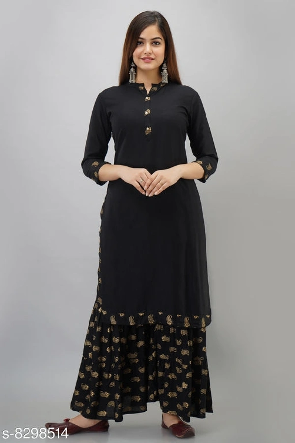 Women's Solid Rayon Slub Kurta with Sharara1