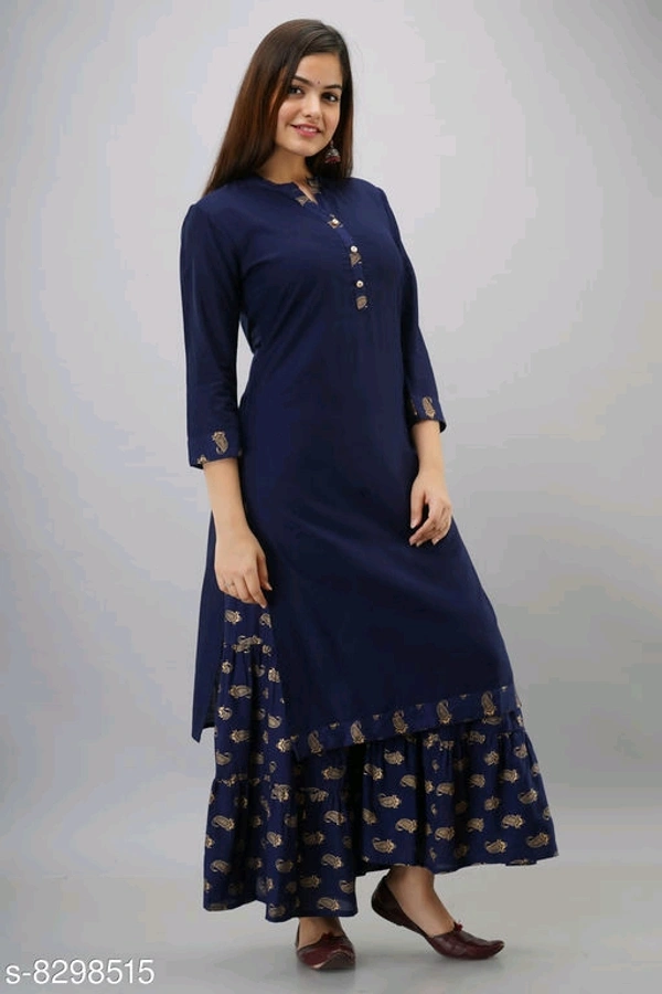 Women's Solid Rayon Slub Kurta with Sharara2